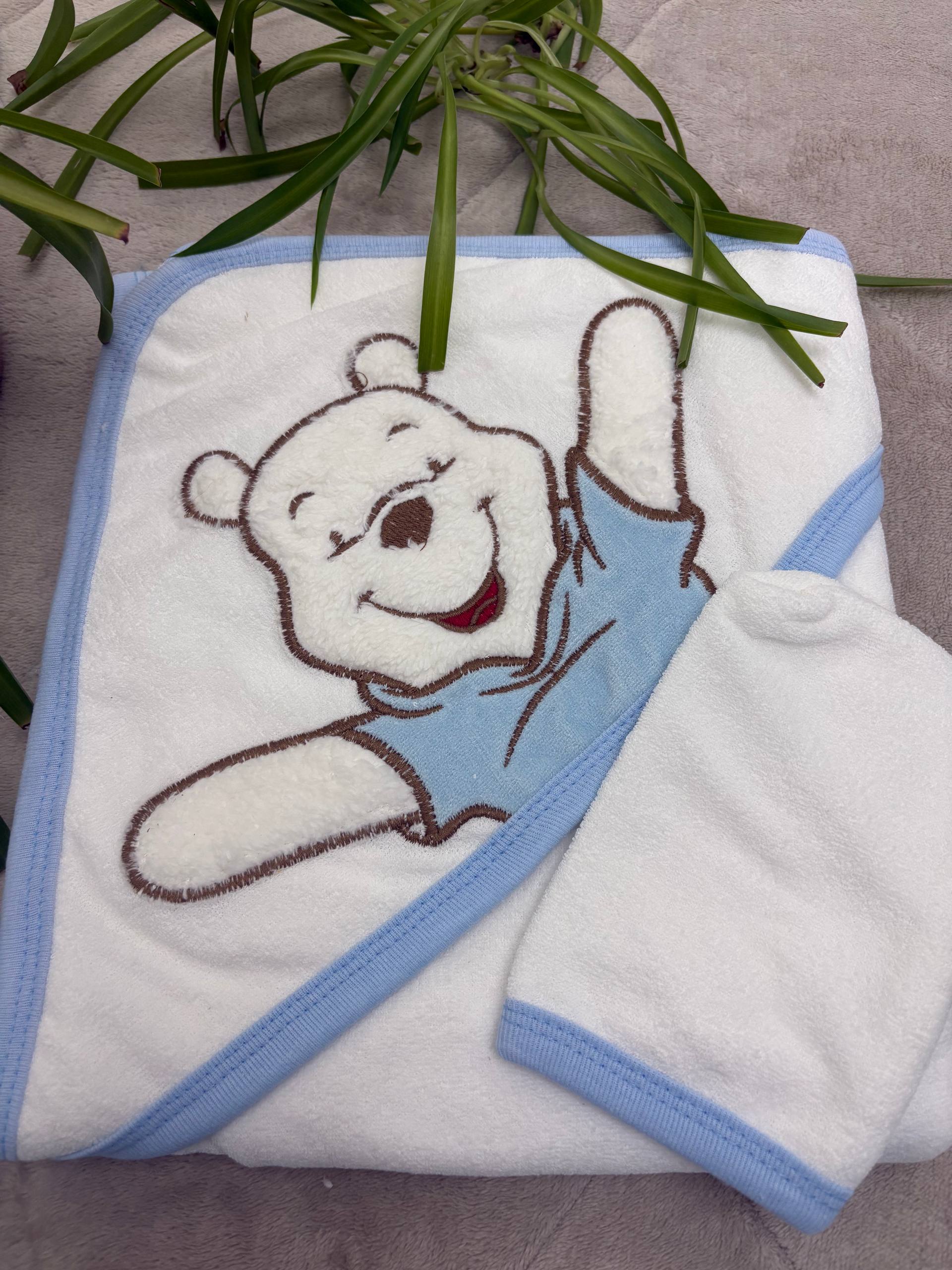 حوله نوزاد دو تکه ترک شیک طرح خرس | نرم، جذب بالا، مناسب پوست حساس