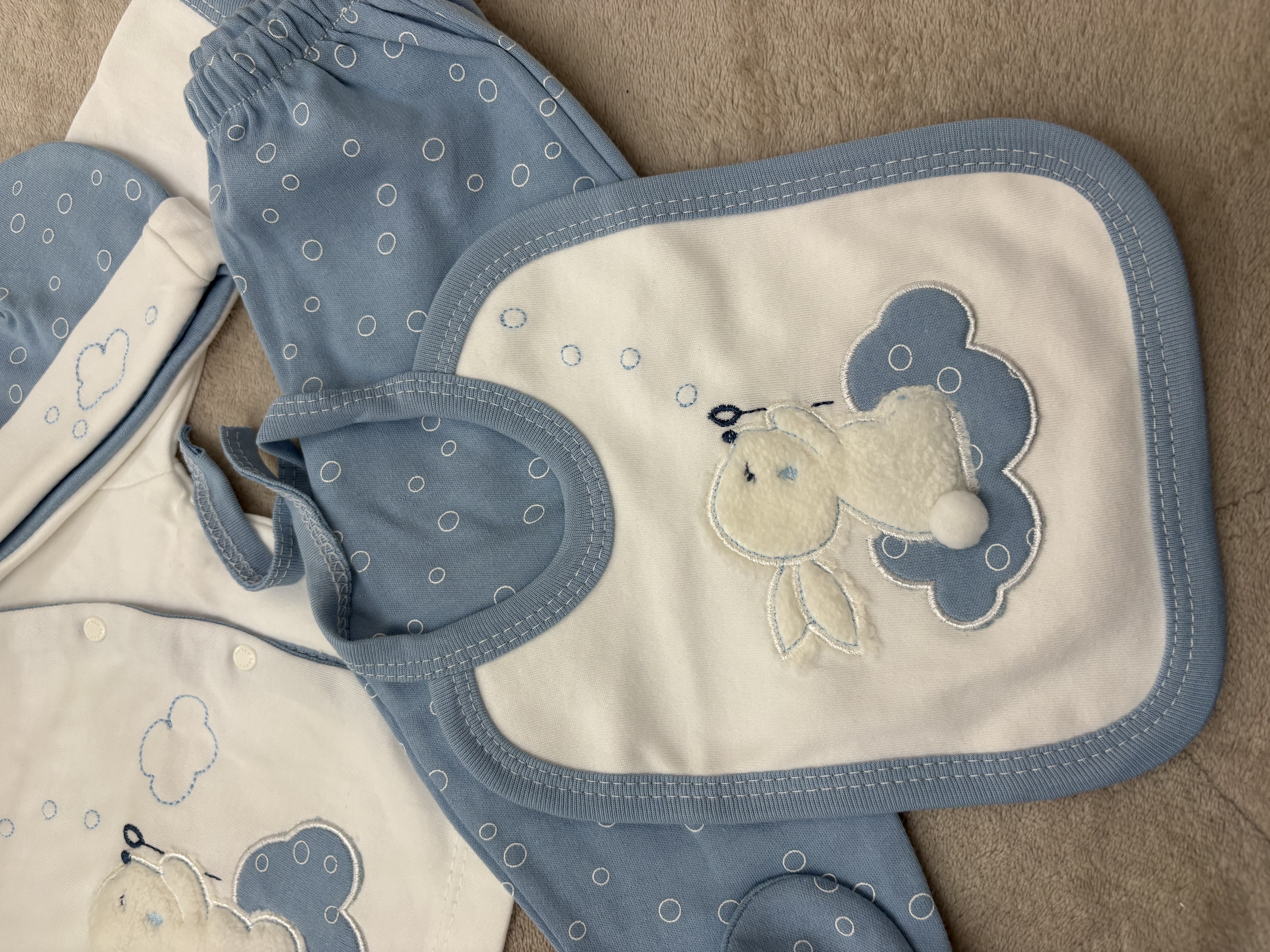 دوخت ظریف، دقیق و استاندارد این ست پنج تکه، بدون زائدههای آزاردهنده و با در نظر گرفتن آناتومی بدن نوزاد انجام شده است تا هنگام پوشیدن و درآوردن لباس، حداکثر راحتی برای والدین و نوزاد فراهم شود. همچنین یقه و سرآستینهای استاندارد باعث میشود لباس فشار یا حساسیتی به بدن کودک وارد نکند.